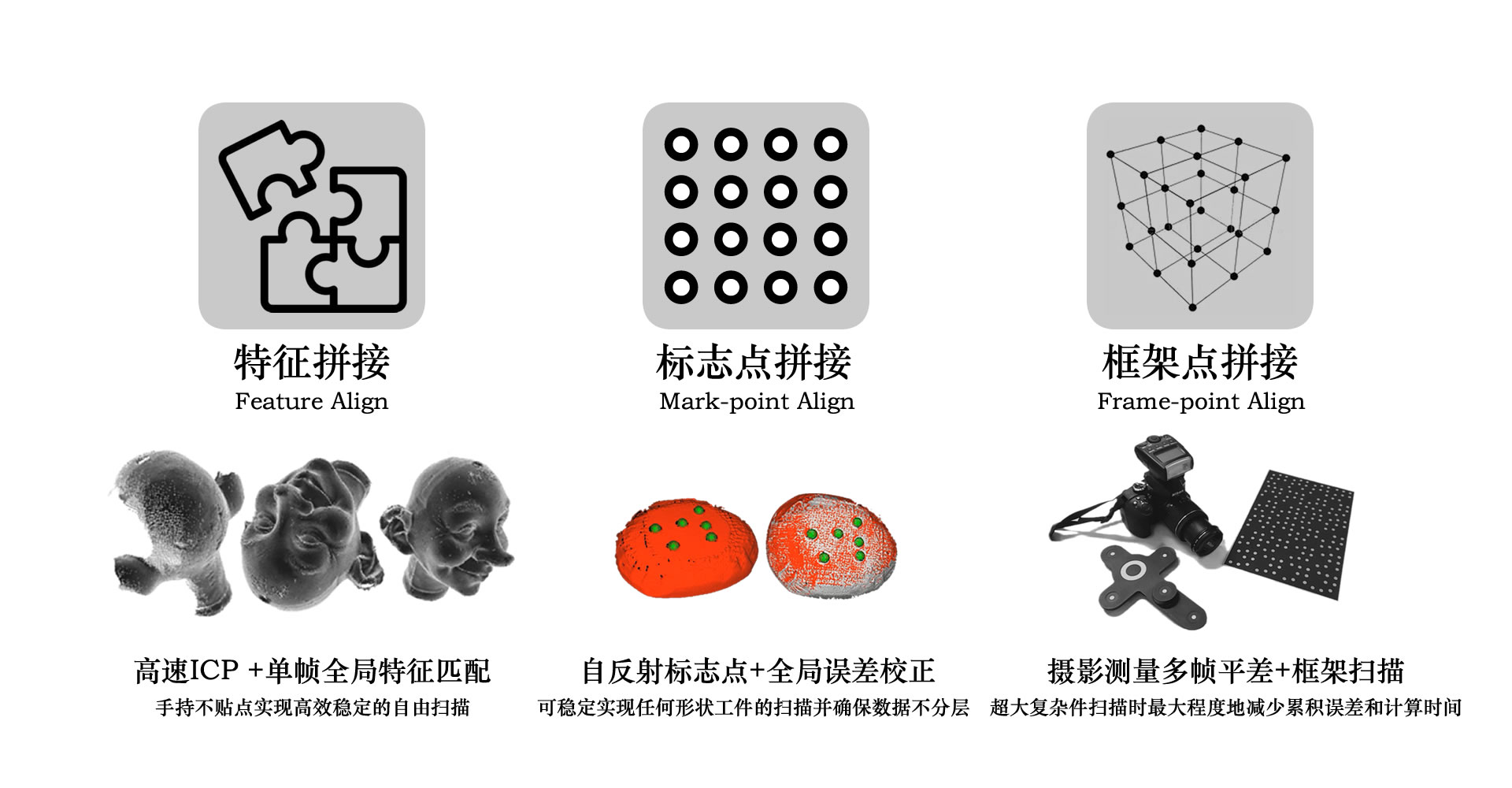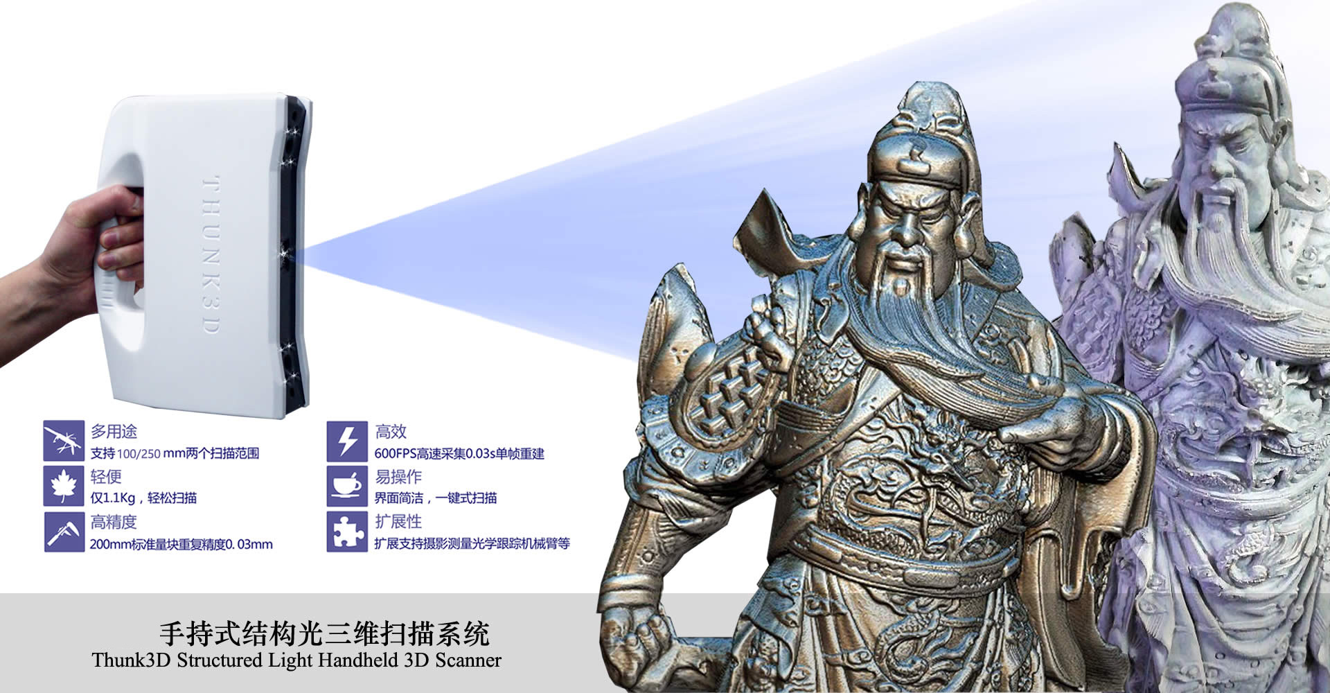 HSCAN-S是基于實(shí)時(shí)三維重建應(yīng)用場(chǎng)景設(shè)計(jì)的高集成度易操作的手持式三維掃描系統(tǒng),可實(shí)現(xiàn)0.03秒高速掃描并一鍵自動(dòng)完成點(diǎn)云全局注冊(cè),去噪融合,無(wú)損網(wǎng)格化,補(bǔ)洞,曲率抽樣生成STL標(biāo)準(zhǔn)三維格式。系統(tǒng)基